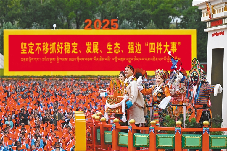 8月20日晚,慶祝西藏自治區(qū)成立60周年文藝晚會《雪域歡歌》在西藏大劇院舉行。演出分“幸福起點(diǎn)”“奔跑的高原”“新的征程”三大篇章,十余個歌舞節(jié)目禮贊雪域巨變,表達(dá)各族人民聽黨話、感黨恩、跟黨走的共同心聲